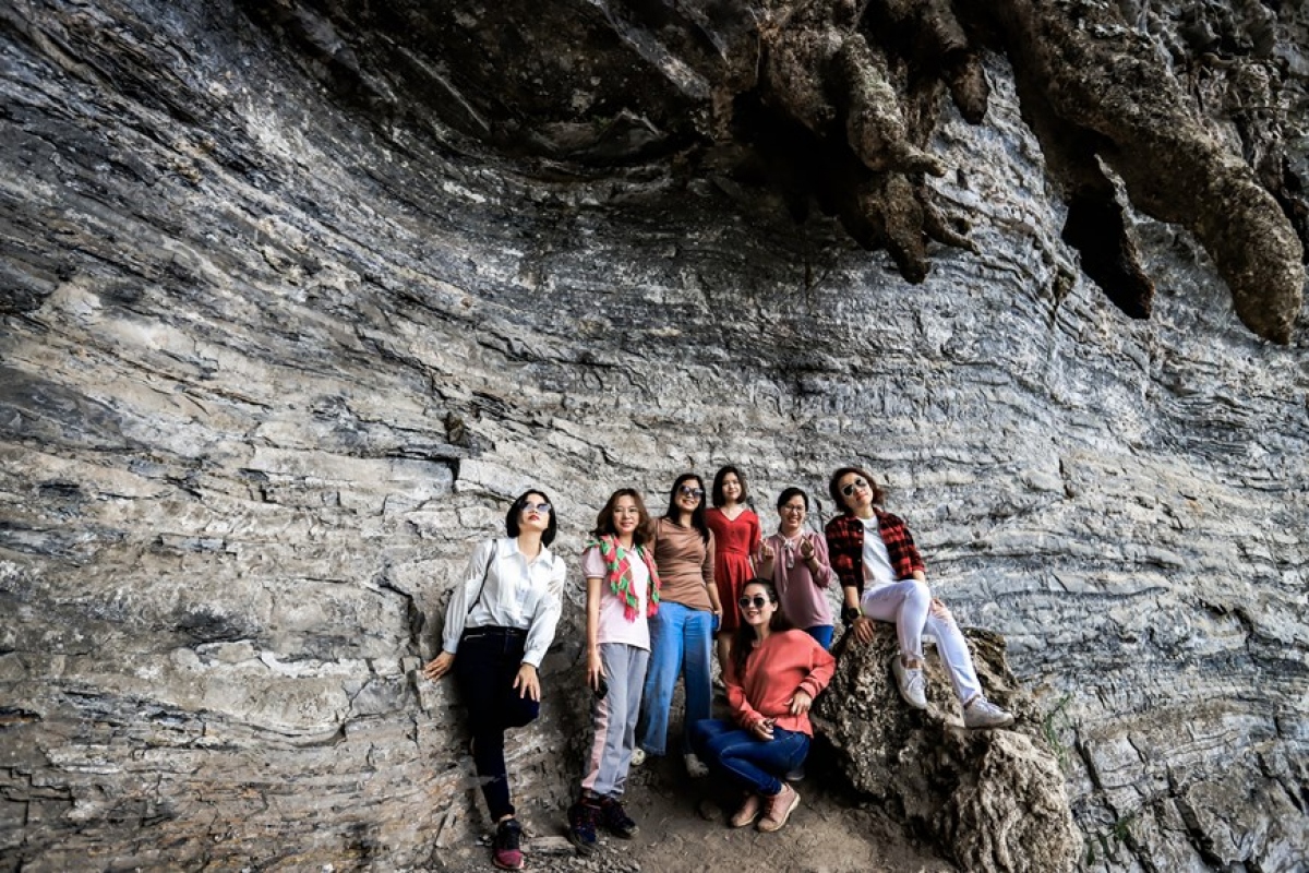 Được mệnh danh là "Cung đường chân mây", ngay từ điểm khởi đầu và gần như suốt dọc hành trình, du khách sẽ được "mục sở thị" loại đá vôi sọc dải, vân đỏ hoặc xanh, phân lớp thành từng tệp mỏng đều tăm tắp, bị vò nhàu thành những nếp uốn nhỏ muôn hình vạn trạng. Ông Emmanuel Cerise (người Pháp) dẫn con trai Marcel Cerise chinh phục quãng đường "xuyên mây". Ông chia sẻ: "Cảnh quan nơi đây thật tuyệt vời, tôi đã từng đi ngọn núi khác ở Việt Nam nhưng chưa thấy nơi nào đẹp và hoang sơ như ở đây".