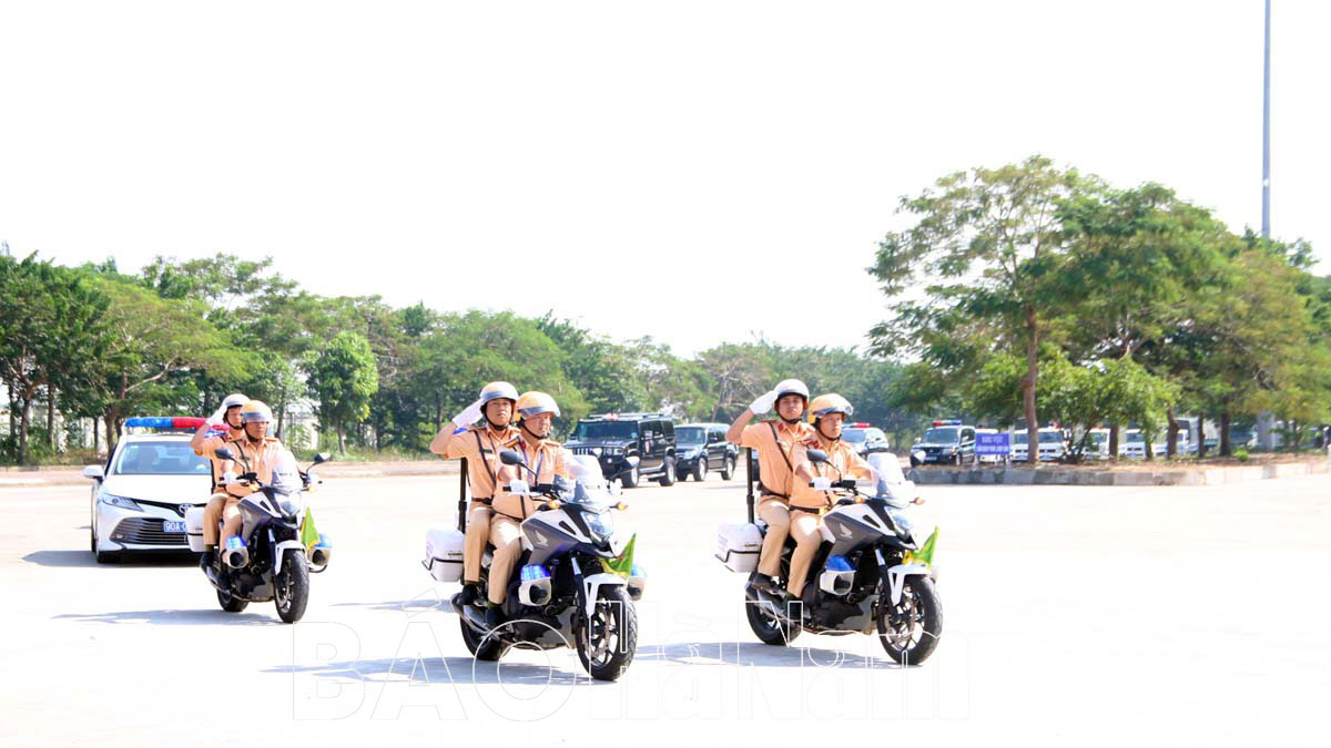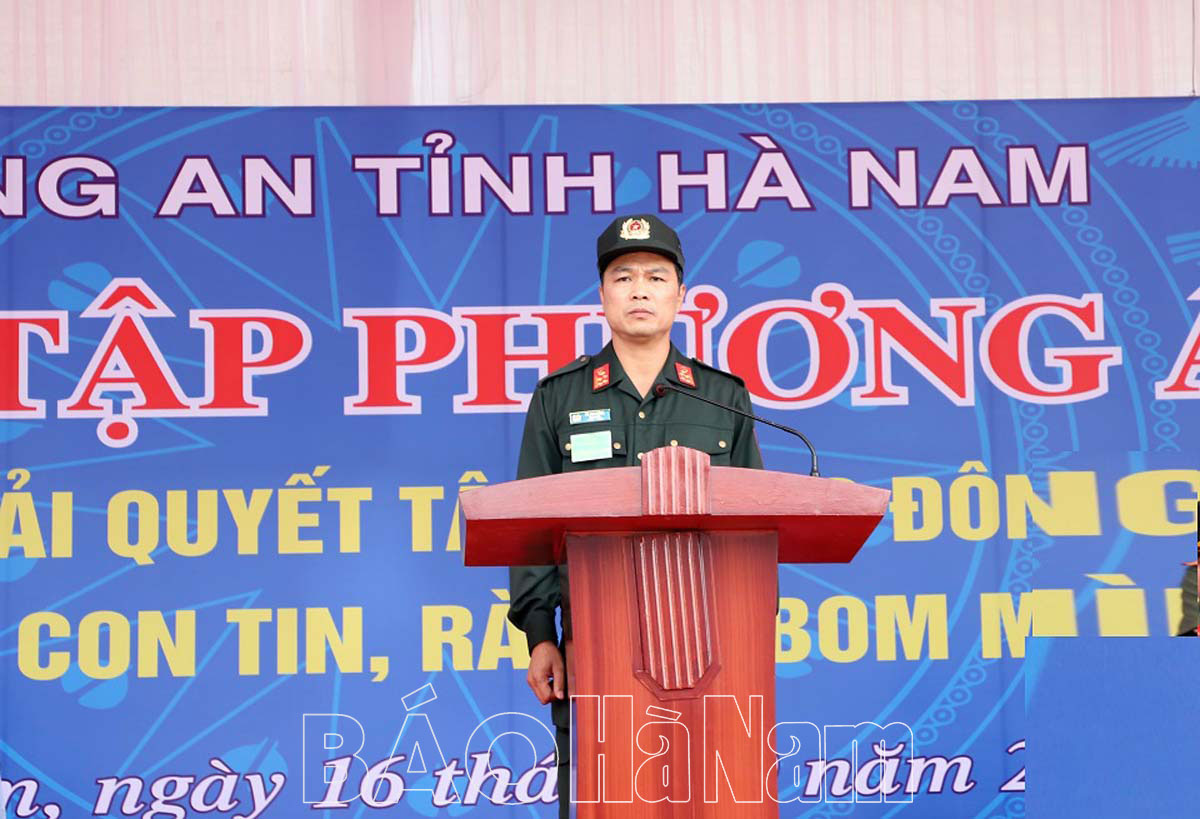 Đại tá Tô Anh Dũng - Ủy viên Ban Thường vụ Tỉnh ủy, Bí thư Đảng ủy, Giám đốc Công an tỉnh phát lệnh diễn tập thực binh.