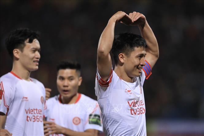 Trung vệ đội trưởng Bùi Tiến Dũng (số 4, Viettel) ghi bàn mở tỷ số của trận đấu ở phút thứ 15.