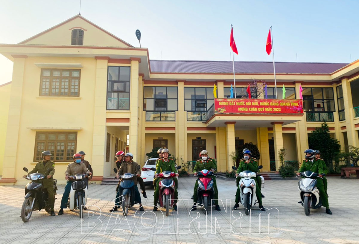 Công an xã Liêm Tuyền ra quân tuần tra, kiểm soát bảo đảm ANTT dịp Tết.