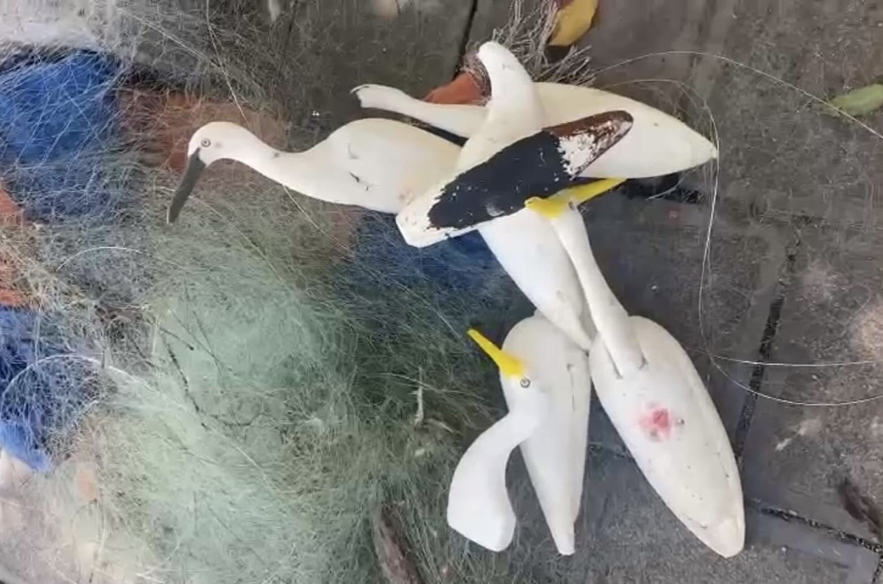 Tang vật là lưới, cò giả bằng xốp được đối tượng dùng để dụ, bắt chim hoang dã.