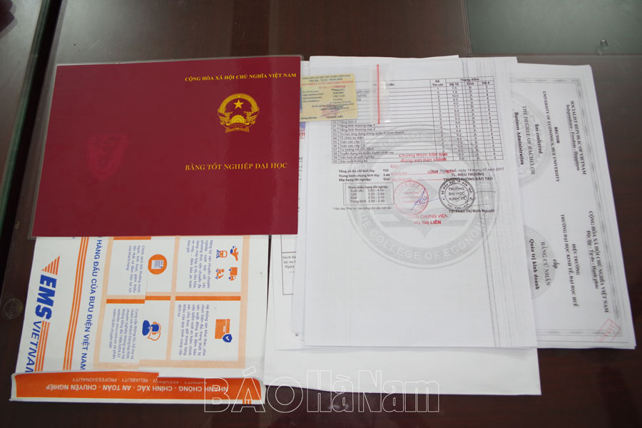 Tại cơ quan Công an, anh H.V.T và anh V.Đ.V cho biết, trong quá trình làm việc tại công ty thuộc khu Công nghiệp Đồng Văn II và khu công nghiệp Đồng Văn III, thị xã Duy Tiên cần có bằng cấp để tăng lương chính trong công việc và cho con gái có nhu cầu sử dụng bằng lái xe mô tô để đi lại nhưng không thi đỗ nên đã lên mạng Facebook đặt mua các loại giấy tờ trên để hợp thức hoá cho công việc của bản thân và cho con gái mà không cần đi thi.