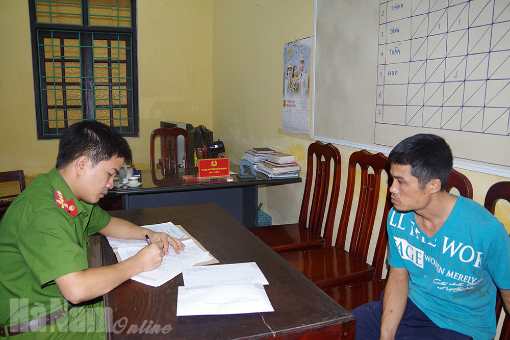 Cơ quan Công an lấy lời khai đối tượng Cường.