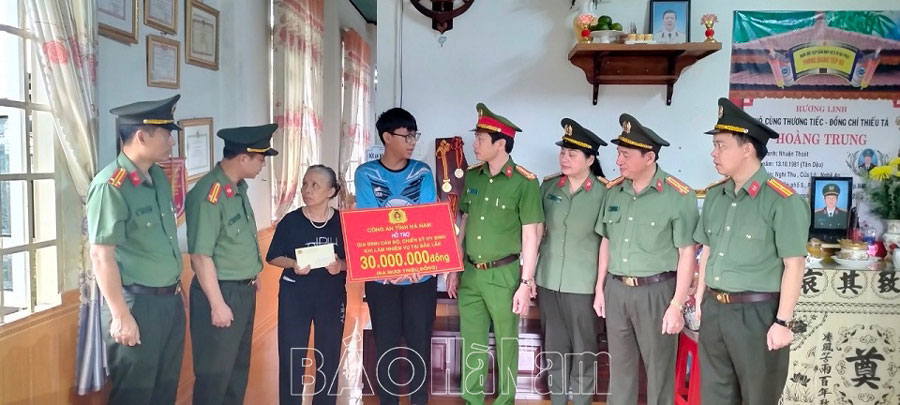 Đoàn công tác đã trao số tiền hỗ trợ 200 triệu đồng cho cho 6 gia đình liệt sĩ và 2 cán bộ Công an bị thương trong khi làm nhiệm vụ tại huyện Cư Kuin. Đây là nghĩa cử cao đẹp, thể hiện tinh thần tương thân tương ái, nghĩa tình đồng chí đồng đội của lãnh đạo, CBCS Công an tỉnh Hà Nam dành cho những người đồng đội đã hy sinh, bị thương trong quá trình làm nhiệm vụ.