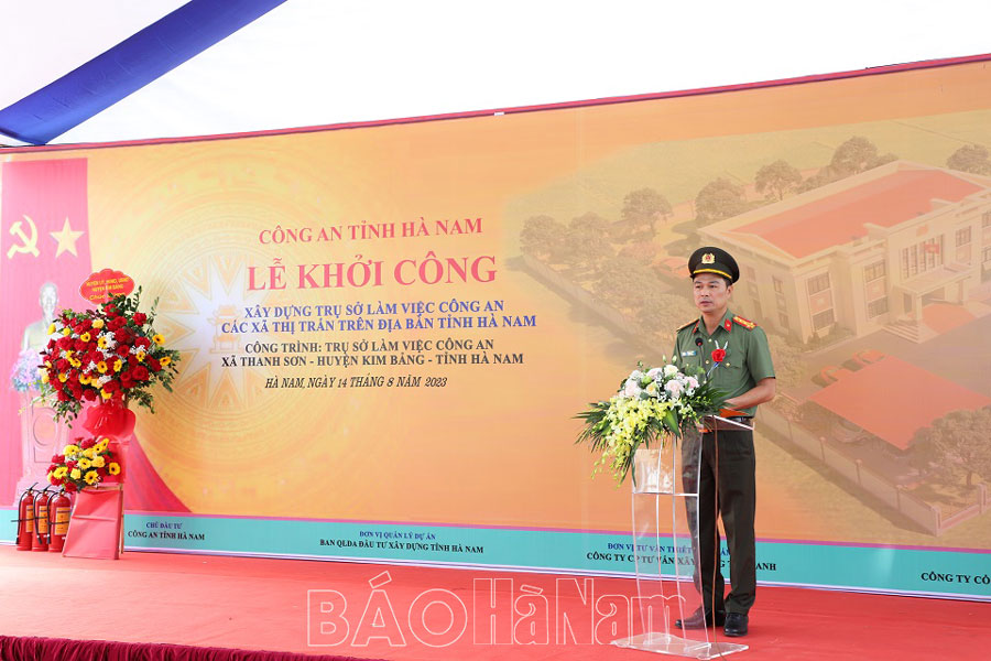 Phát biểu chỉ đạo tại Lễ khởi công, đồng chí Đại tá Tô Anh Dũng, Uỷ viên BTV Tỉnh uỷ, Bí thư Đảng uỷ, Giám đốc Công an tỉnh nhấn mạnh việc tổ chức khởi công xây dựng công trình Trụ sở làm việc Công an xã Thanh Sơn, huyện Kim Bảng là một trong những hoạt động có ý nghĩa thiết thực chào mừng 78 năm Ngày cách mạng tháng Tám và Quốc Khánh 2/9; 78 năm Ngày truyền thống lực lượng Công an nhân dân (19/8/1945-19/8/2023). Đồng thời yêu cầu, đơn vị thi công cần thực hiện nghiêm túc các quy định của pháp luật trong lĩnh vực đầu tư công, xây dựng cơ bản và tập trung nhân lực hoàn thành công trình theo đúng tiến độ, đảm bảo chất lượng; thường xuyên phối hợp kiểm tra, giám sát chặt chẽ quá trình thi công, hoàn thành đúng tiến độ đề ra./.