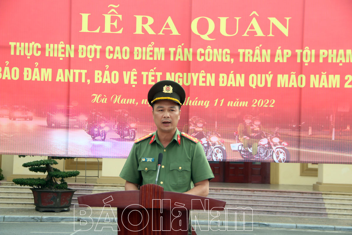 Phát biểu giao nhiệm vụ tại Lễ ra quân, Đại tá Tô Anh Dũng, Ủy viên BTV Tỉnh ủy, Giám đốc Công an tỉnh yêu cầu toàn lực lượng Công an tỉnh nêu cao tinh thần đoàn kết, khắc phục khó khăn thi đua hoàn thành xuất sắc các chỉ tiêu, mệnh lệnh công tác theo chỉ đạo của Đảng ủy Công an Trung ương, lãnh đạo Bộ Công an, Tỉnh ủy, HĐND, UBND tỉnh.
