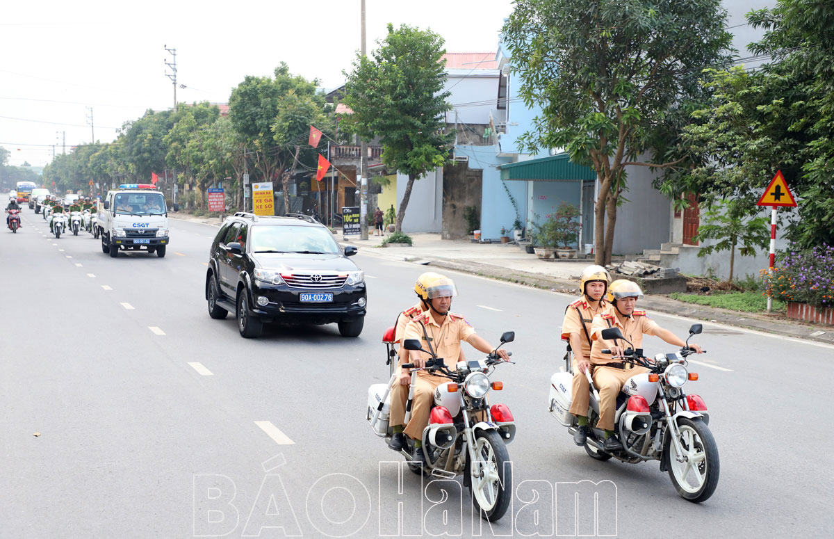 Ngay sau buổi lễ, các lực lượng Công an tỉnh đã tổ chức diễu hành biểu dương lực lượng dọc một số tuyến đường trung tâm thành phố Phủ Lý nhằm tuyên truyền, nâng cao nhận thức cho nhân dân về công tác phòng, chống tội phạm, TNXH, tạo khí thế quyết tâm tấn công, trấn áp tội phạm của CBCS trong toàn lực lượng.