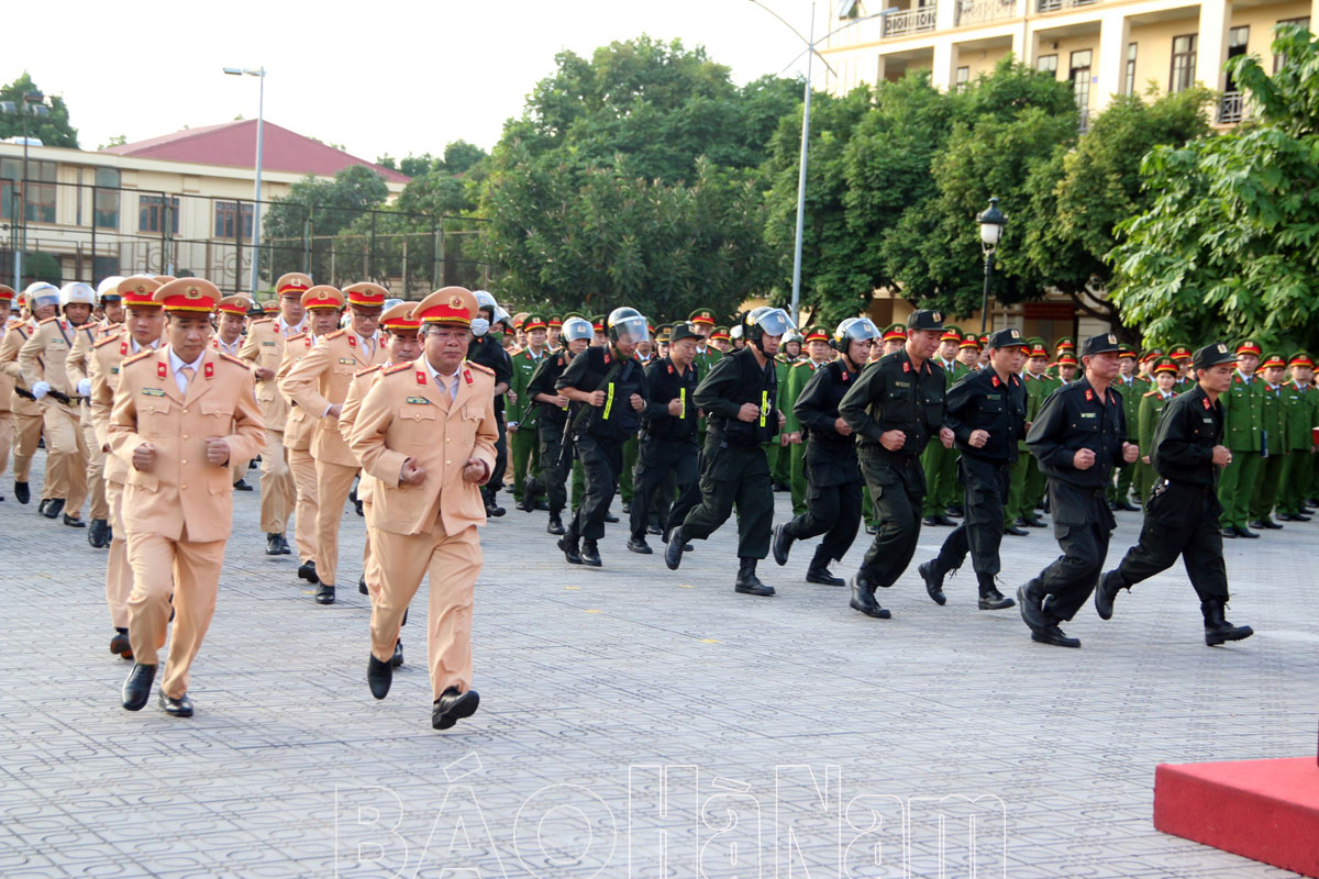 Ngay sau buổi lễ, các lực lượng Công an tỉnh đã tổ chức diễu hành biểu dương lực lượng dọc một số tuyến đường trung tâm thành phố Phủ Lý nhằm tuyên truyền, nâng cao nhận thức cho nhân dân về công tác phòng, chống tội phạm, TNXH, tạo khí thế quyết tâm tấn công trấn áp tội phạm của CBCS trong toàn lực lượng.