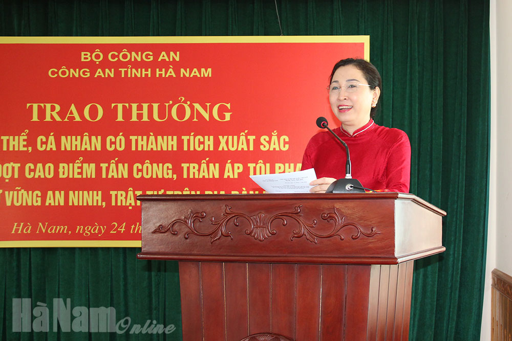 Về nhiệm vụ thời gian tới, đồng chí Đinh Thị Lụa đề nghị Công an tỉnh tiếp tục phát huy kết quả, thành tích đạt được, tích cực, chủ động đấu tranh quyết liệt với các loại tội phạm, vi phạm pháp luật, đảm bảo an ninh chính trị, trật tự an toàn xã hội kết hợp phòng, chống dịch bệnh Covid-19, phục vụ nhiệm vụ phát triển kinh tế- xã hội của tỉnh. Nhất là dịp Kỷ niệm 130 năm ngày thành lập tỉnh Hà Nam; Đại hội Đảng toàn quốc lần thứ XIII; Tết nguyên đán Tân Sửu 2021...