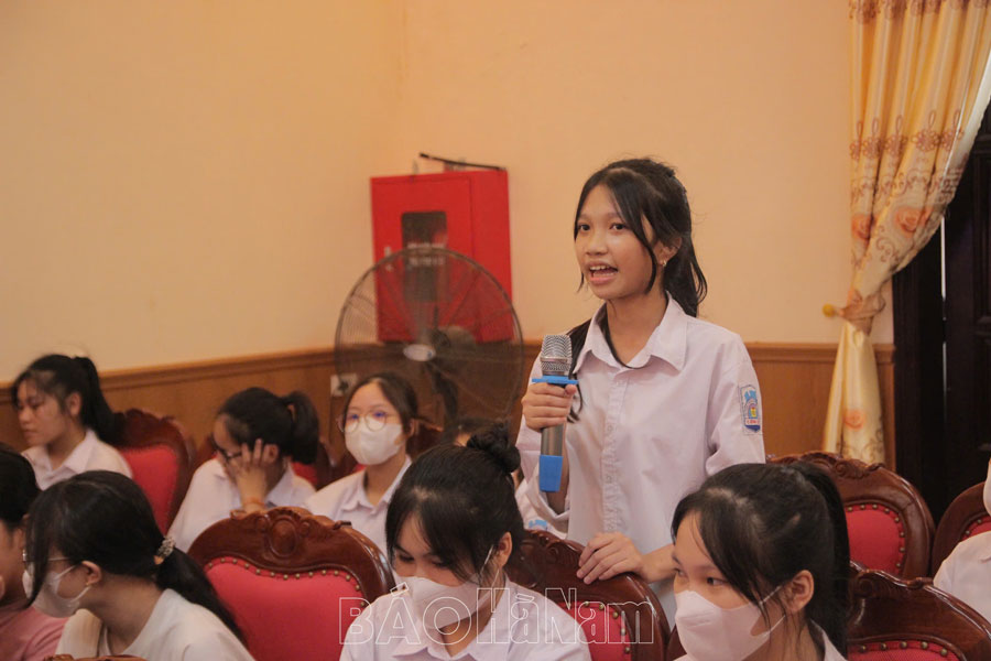 Đoàn viên thanh niên xã Tràng An đặt câu hỏi xoay quanh những tình huống có thật trên không gian mạng.