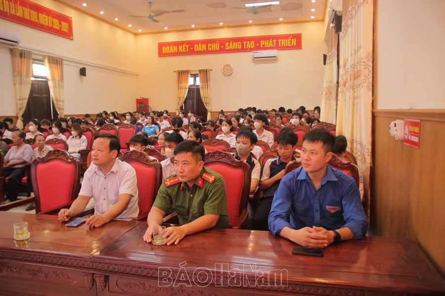 Chiều 24/8, Chi đoàn - Hội phụ nữ Công an huyện Bình Lục phối hợp với Đoàn TNCS Hồ Chí Minh, Hội LHPN xã Tràng An tổ chức tuyên truyền phòng ngừa các thông tin xấu, độc; thông tin giả, tin sai sự thật trên không gian mạng cho hơn 100 đoàn viên thanh niên, hội viên phụ nữ xã.