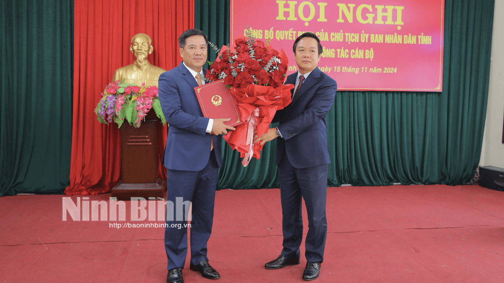 Tại hội nghị, đồng chí Giám đốc Sở Nội vụ đã công bố Quyết định của Chủ tịch UBND tỉnh về việc phân công, điều động, bổ nhiệm đồng chí Phan Thành Công, TUV, Bí thư Huyện ủy, Chủ tịch HĐND huyện Yên Khánh giữ chức vụ Giám đốc Sở Giáo dục và Đào tạo từ ngày 4/1/2021; Bổ nhiệm đồng chí Đinh Văn Khâm, Hiệu trưởng Trường THPT chuyên Lương Văn Tụy giữ chức vụ Phó Giám đốc Sở Giáo dục và Đào tạo từ ngày 4/1/2021.