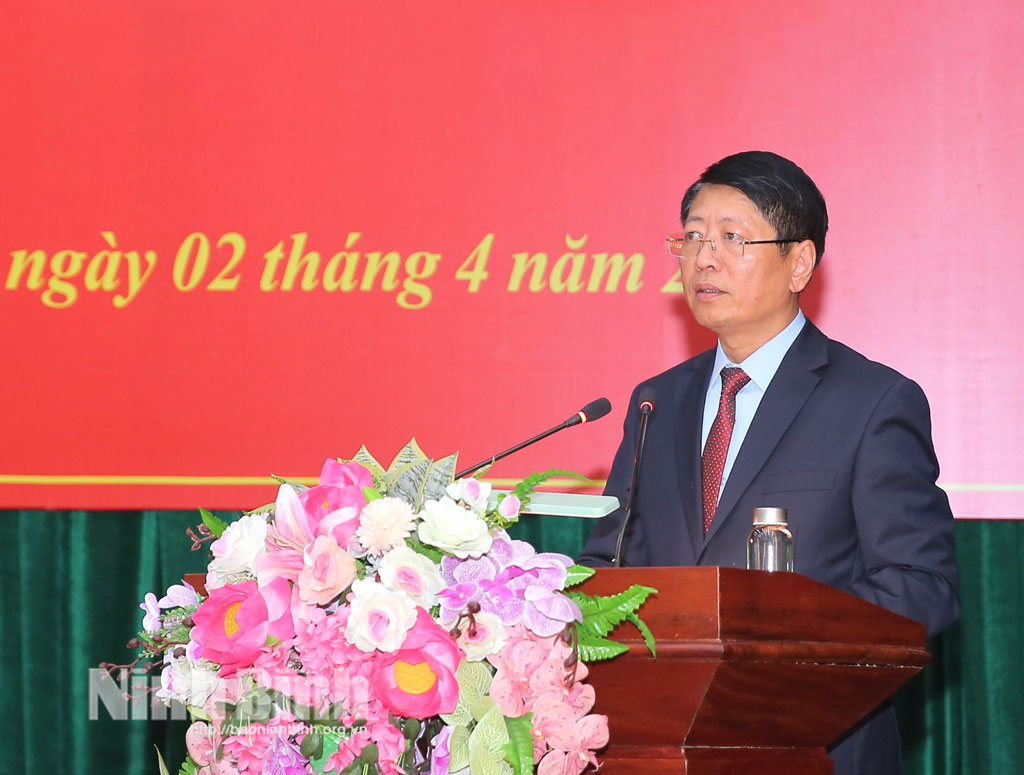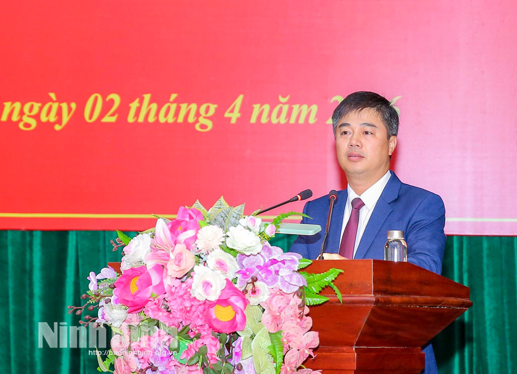Đồng chí Trương Quốc Bảo, TUV, Giám đốc Trung tâm Xúc tiến đầu tư và thương mại tỉnh Ninh Bình phát biểu nhận nhiệm vụ.