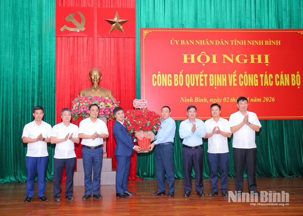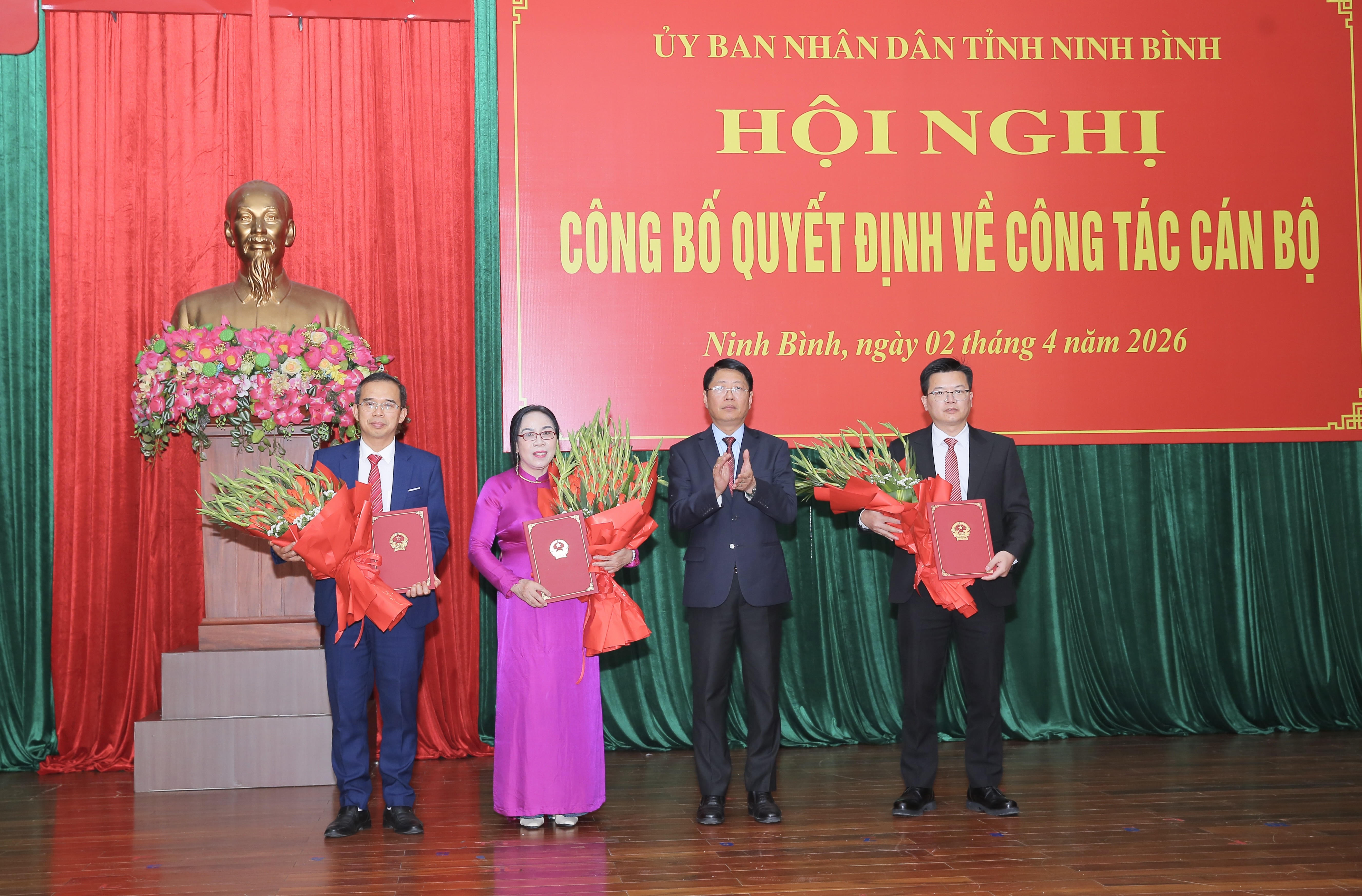 Tại Hội nghị, lãnh đạo Sở Nội vụ đã công bố các quyết định của Chủ tịch UBND tỉnh về công tác cán bộ tại Trung tâm Xúc tiến đầu tư và thương mại tỉnh. Theo đó, đồng chí Trương Quốc Bảo, Tỉnh ủy viên, Phó Giám đốc Sở Nông nghiệp và Môi trường được điều động, bổ nhiệm giữ chức Giám đốc Trung tâm Xúc tiến đầu tư và thương mại tỉnh Ninh Bình, thời hạn bổ nhiệm 5 năm, kể từ ngày 01/4/2026. Cùng với đó, các đồng chí được bổ nhiệm giữ chức Phó Giám đốc Trung tâm theo quy định.