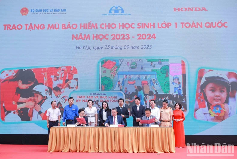 Sáng 25/9, tại Hà Nội, Ủy ban An toàn giao thông Quốc gia, Bộ Giáo dục và Đào tạo và Công ty Honda Việt Nam đã phối hợp tổ chức Lễ công bố Chương trình trao tặng 2 triệu mũ bảo hiểm cho học sinh lớp 1 trên toàn quốc trong năm học 2023-2024 kết hợp nâng cao kiến thức an toàn giao thông cho học sinh và phụ huynh.