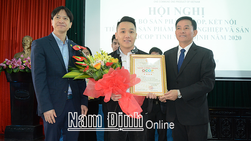 Năm 2020, các sở, ngành và các huyện, thành phố đã phối hợp các cơ quan truyền thông thường xuyên thông tin, tuyên truyền về nội dung Chương trình OCOP và các sản phẩm OCOP; chú trọng động viên, khuyến khích, hỗ trợ kịp thời và nhân rộng các mô hình phát triển sản phẩm OCOP hay, cách làm sáng tạo; in ấn, phát tài liệu, tổ chức các hội nghị tập huấn về Chương trình OCOP cho các xã, thị trấn trong toàn tỉnh. Cấp ủy Đảng, chính quyền các địa phương đã tập trung chỉ đạo, hướng dẫn, hỗ trợ các doanh nghiệp, cơ sở sản xuất, hộ gia đình tham gia… Nhờ đó, Chương trình OCOP đã nhận được sự quan tâm của các đơn vị, doanh nghiệp, cơ sở sản xuất trên địa bàn. Nhiều sản phẩm OCOP được các chủ thể tiếp tục nâng cấp, cải tiến, chuẩn hóa chất lượng, mẫu mã, bao bì theo tiêu chí sản phẩm OCOP… Qua 2 đợt đánh giá, xếp hạng năm 2020, toàn tỉnh đã có 110 sản phẩm được công nhận đạt sản phẩm OCOP hạng 3 và 4 sao, trong đó có 11 sản phẩm OCOP hạng 4 sao. Số sản phẩm OCOP có đều ở các huyện, thành phố nhưng tập trung chủ yếu ở huyện Hải Hậu, Ý Yên và thành phố Nam Định. Như vậy đến nay, toàn tỉnh có 146 sản phẩm OCOP, trong đó 28 sản phẩm hạng 4 sao, 118 sản phẩm hạng 3 sao 80 đơn vị (gồm 35 doanh nghiệp, 18 hợp tác xã và 27 hộ sản xuất, kinh doanh). Về các nhóm sản phẩm OCOP có 135 sản phẩm thuộc ngành thực phẩm, đồ uống; 2 sản phẩm ngành thủ công mỹ nghệ; 2 sản phẩm ngành du lịch nông thôn. Tại hội nghị, UBND tỉnh đã trao quyết định công nhận sản phẩm OCOP cho các chủ thể có sản phẩm đạt tiêu chuẩn sản phẩm OCOP năm 2020.