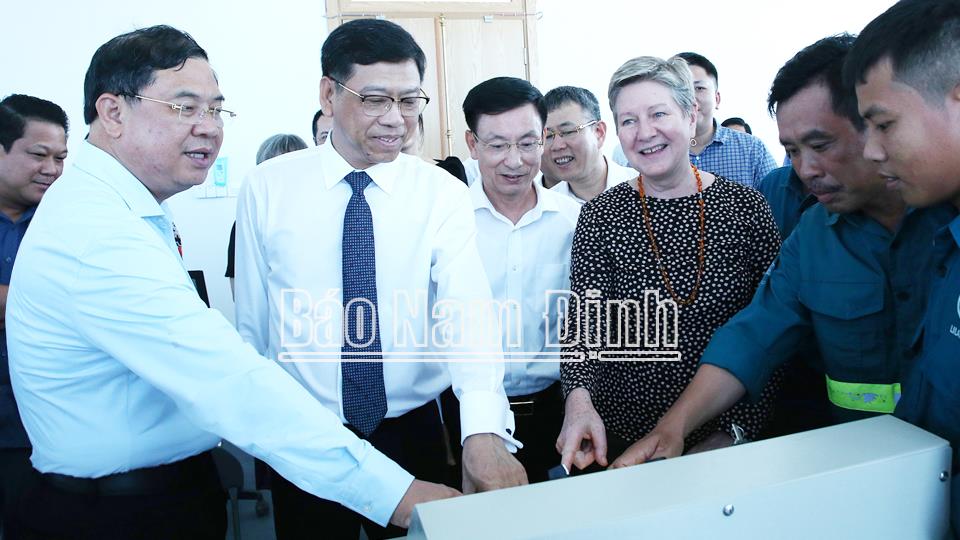 | Các đồng chí: Bí thư Tỉnh ủy Phạm Gia Túc; Chủ tịch UBND tỉnh Phạm Đình Nghị; Thứ trưởng Bộ Giao thông Vận tải Nguyễn Xuân Sang tham quan Kênh và Âu tàu Nghĩa Hưng. |
