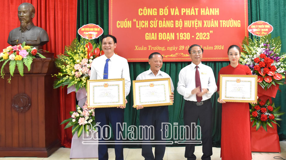 Cuốn “Lịch sử Đảng bộ huyện Xuân Trường (1930 – 2023)” được xuất bản 500 cuốn; là tài liệu quý phục vụ cho việc nghiên cứu phát triển lý luận lịch sử Đảng, đồng thời là tài liệu quan trọng giáo dục truyền thống, lịch sử đối với cán bộ, đảng viên và nhân dân, đặc biệt là đối với thế hệ trẻ, qua đó chung tay xây dựng huyện Xuân Trường văn hiến, Anh hùng ngày càng phát triển giàu đẹp, văn minh, hiện đại./.