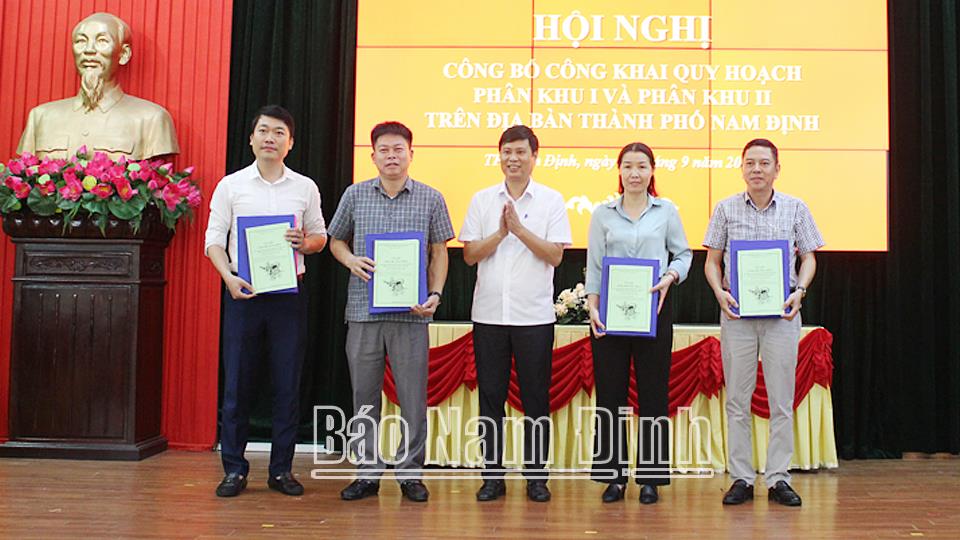 | Lãnh đạo UBND thành phố Nam Định bàn giao hồ sơ quy hoạch phân khu phía Bắc cho các đơn vị để thực hiện và quản lý quy hoạch. |