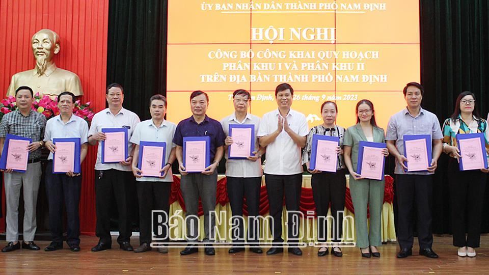 Ngày 26-9, UBND thành phố Nam Định đã tổ chức hội nghị công bố công khai quy hoạch phân khu I (phân khu trung tâm) và quy hoạch phân khu II (phân khu phía bắc) của thành phố. Dự hội nghị có đại diện lãnh đạo các sở: Tài nguyên và Môi trường, Giao thông Vận tải, Xây dựng; lãnh đạo UBND thành phố Nam Định...