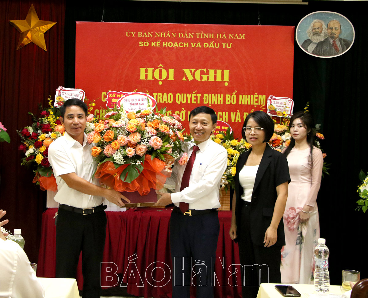 Sau khi nghe đồng chí Giám đốc Sở Nội vụ Công bố Quyết định của Chủ tịch UBND tỉnh về việc bổ nhiệm chức vụ Giám đốc Sở KH&ĐT đối với đồng chí Phạm Hồng Thanh, Tỉnh ủy viên, nguyên Bí thư Thị ủy Duy Tiên, đồng chí Trương Quốc Huy, Phó Bí Thư Tỉnh ủy, Chủ tịch UBND tỉnh, Trưởng đoàn Đại biểu Quốc hội tỉnh đã trao Quyết định và tặng hoa chúc mừng tân Giám đốc Sở KH&ĐT.