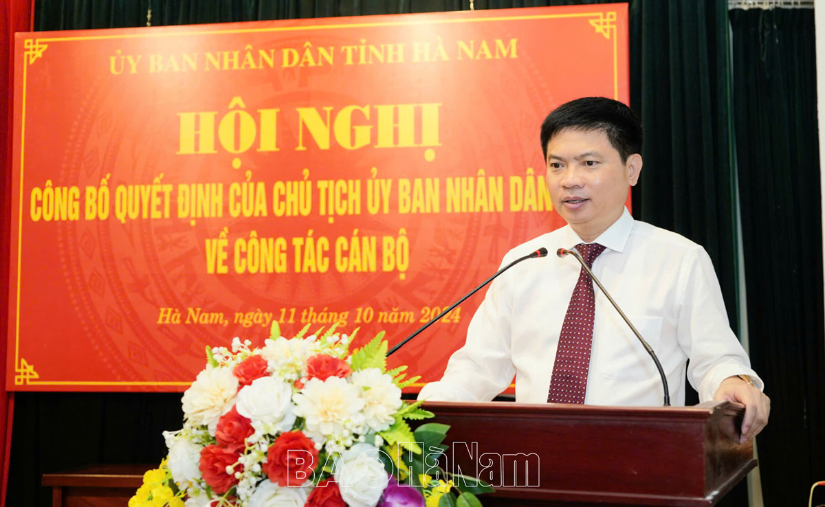 Chiều ngày 11/10, UBND tỉnh tổ chức công bố Quyết định của Chủ tịch UBND tỉnh về công tác cán bộ. Dự hội nghị có các đồng chí: Trương Quốc Huy, Phó Bí thư Tỉnh ủy, Chủ tịch UBND tỉnh, Trưởng Đoàn đại biểu Quốc hội tỉnh; Đặng Đình Thoảng, Ủy viên Ban Thường vụ Tỉnh ủy, Trưởng Ban Tổ chức Tỉnh ủy; lãnh đạo Sở Nông nghiệp và Phát triển nông thôn (NN & PTNT), Sở Nội Vụ, Văn phòng UBND tỉnh, huyện Kim Bảng…
