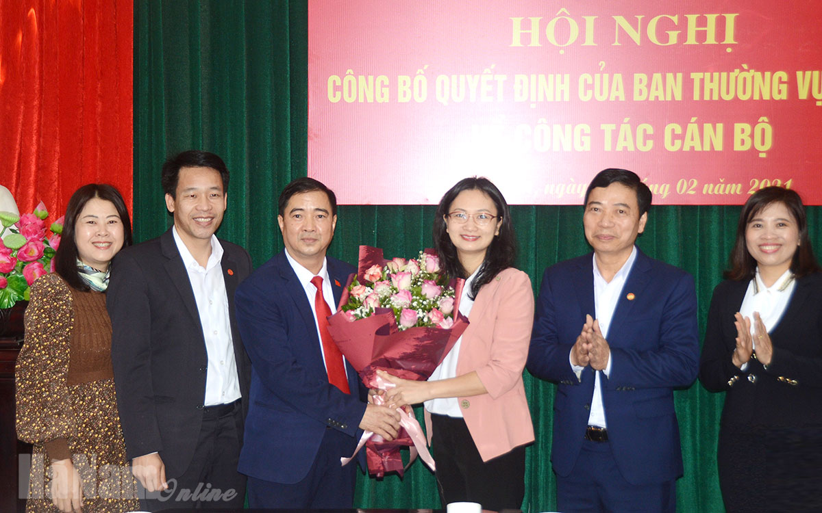 Đồng chí Phó Bí thư Thường trực Tỉnh ủy Đinh Thị Lụa chúc mừng và trao quyết định điều động của BTV Tỉnh ủy đối với đồng chí Vũ Hồng Sơn.Đồng chí Đinh Thị Lụa, Phó Bí thư Thường trực Tỉnh ủy phát biểu tại hội nghị.