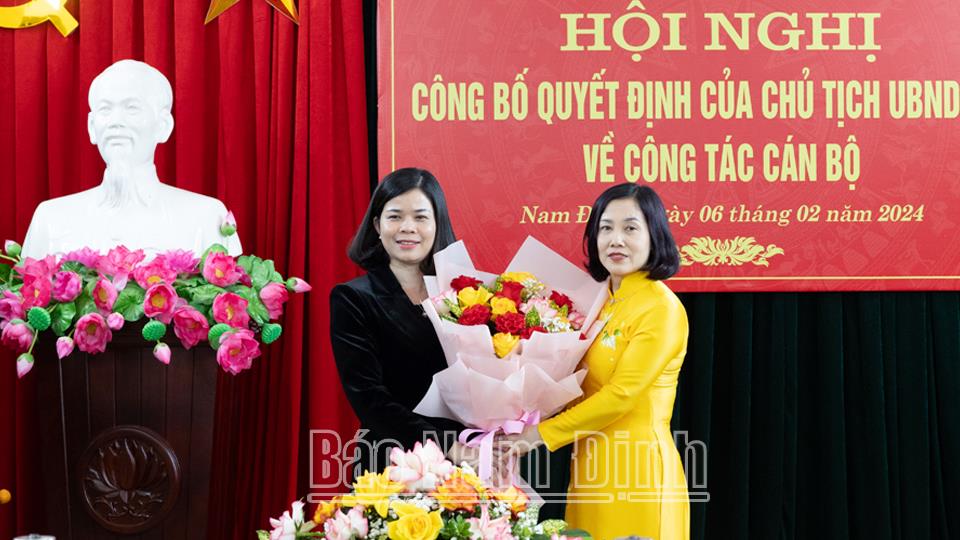 Tại hội nghị, lãnh đạo Sở Nội vụ đã công bố Quyết định số 329/QĐ-UBND ngày 5-2-2024 của UBND tỉnh về việc tiếp nhận và bổ nhiệm đồng chí Hoàng Thị Hoài Phương, TUV, Tổng Biên tập Báo Nam Định đến nhận công tác, giữ chức vụ Giám đốc Đài Phát thanh và Truyền hình tỉnh từ ngày 6-2-2024.