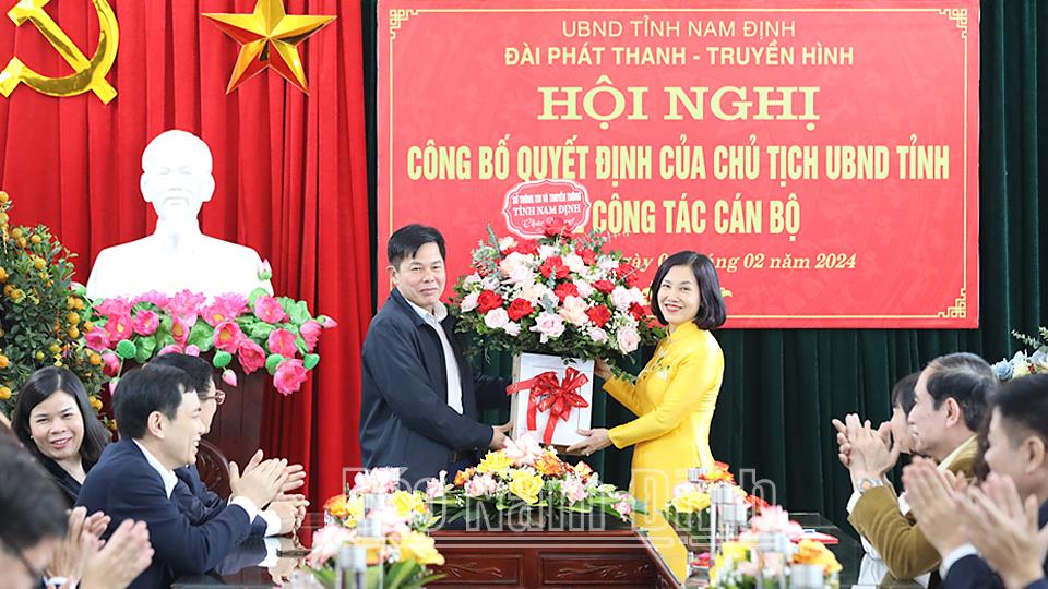 Ngày 6-2, tại trụ sở Đài Phát thanh và Truyền hình tỉnh đã diễn ra hội nghị công bố Quyết định của Chủ tịch UBND tỉnh về công tác cán bộ. Các đồng chí: Phạm Đình Nghị, Phó Bí thư Tỉnh ủy, Chủ tịch UBND tỉnh; Phạm Thị Thu Hằng, Ủy viên Ban TVTU, Trưởng Ban Tuyên giáo Tỉnh ủy; lãnh đạo Sở Nội vụ, Sở Thông tin và Truyền thông, Báo Nam Định, Đài Phát thanh và Truyền hình tỉnh tới dự.