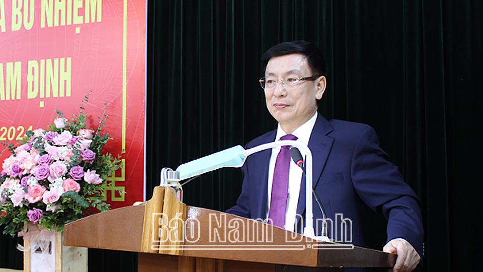 | Đồng chí Chủ tịch UBND tỉnh Phạm Đình Nghị phát biểu giao nhiệm vụ cho đồng chí Trần Văn Hưng, Giám đốc Sở Xây dựng. |