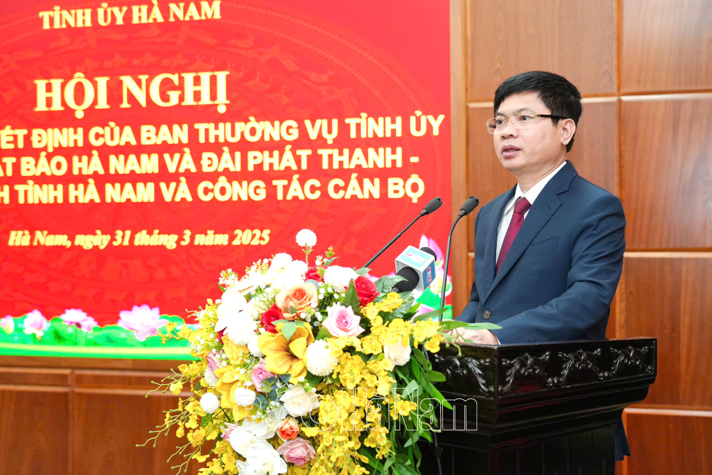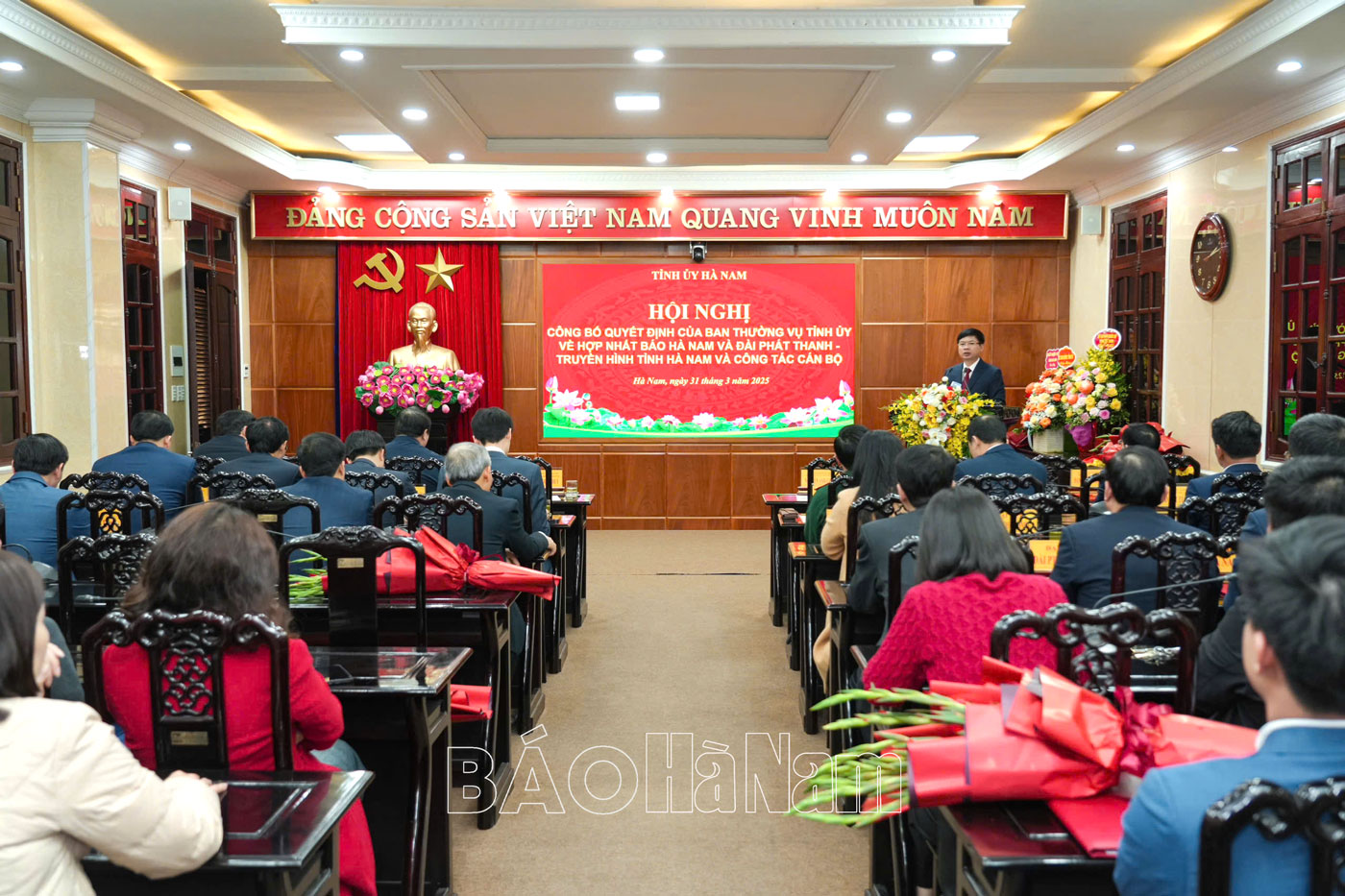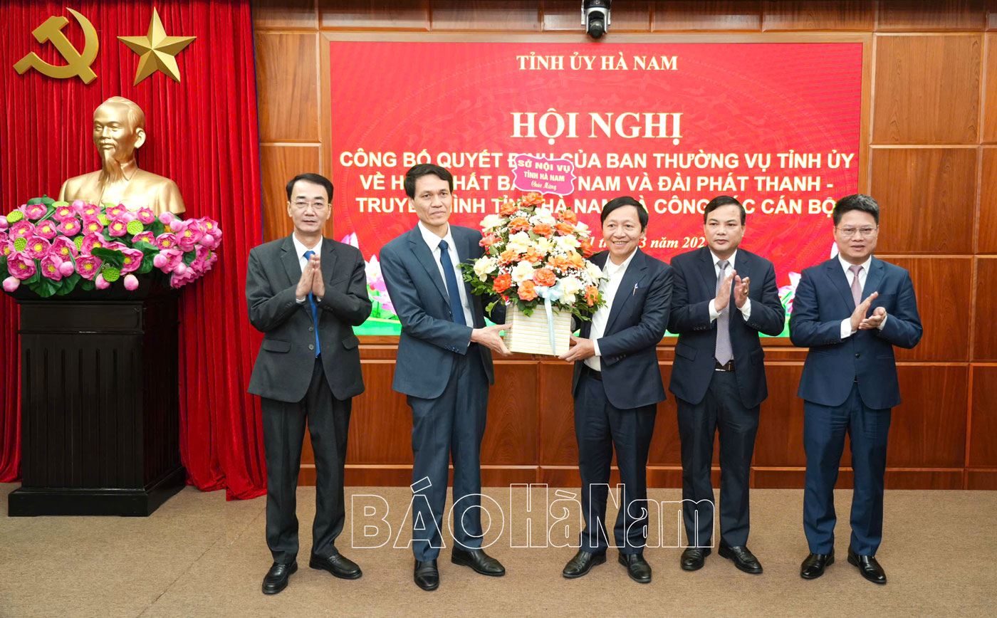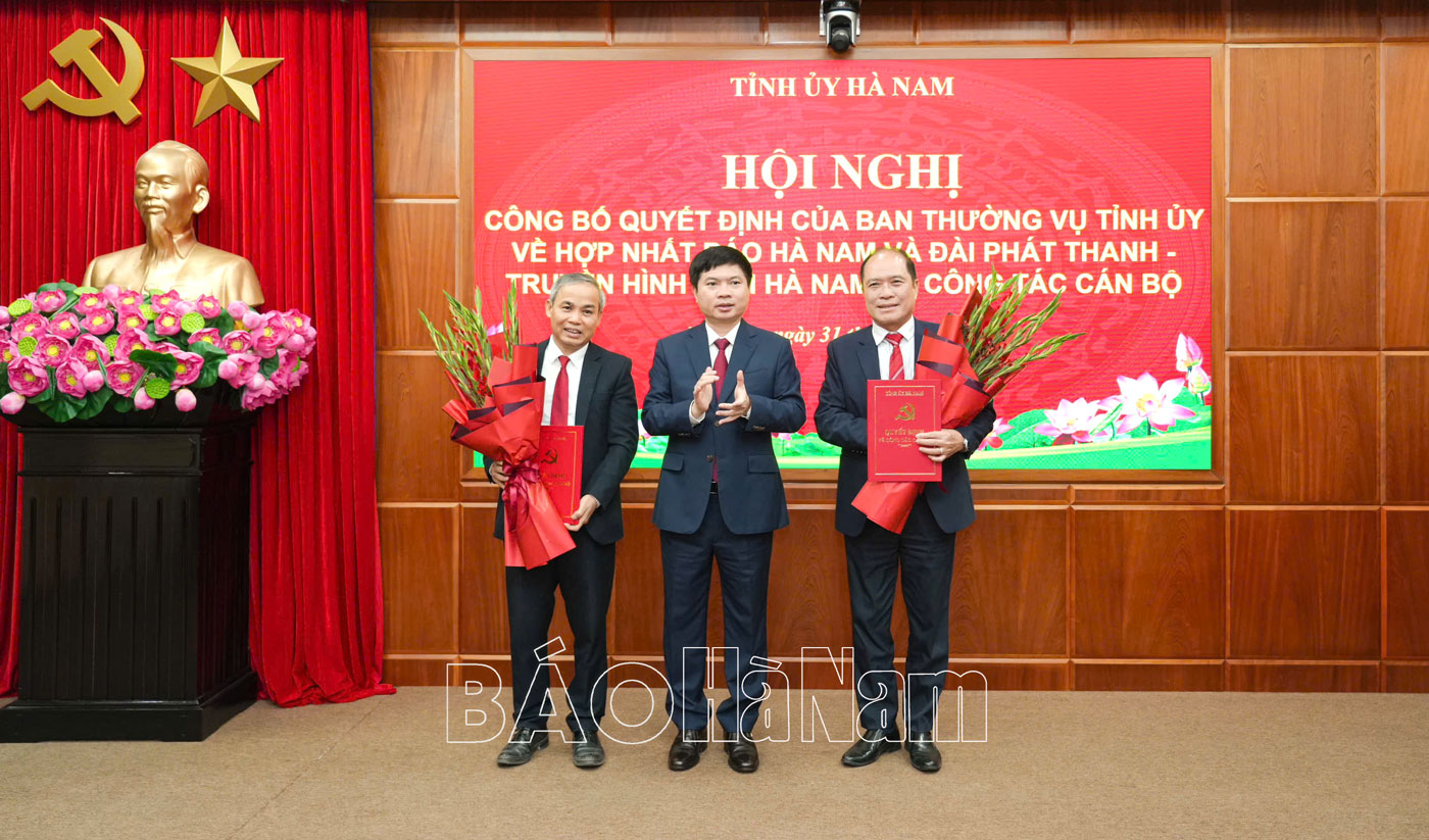 Chiều 31/3, Ban Thường vụ (BTV) Tỉnh ủy tổ chức hội nghị công bố quyết định về hợp nhất Báo Hà Nam và Đài Phát thanh và Truyền hình tỉnh và công tác cán bộ. Đồng chí Trương Quốc Huy, Bí thư Tỉnh ủy, Chủ tịch UBND tỉnh, Trưởng Đoàn đại biểu Quốc hội tỉnh dự, chỉ đạo hội nghị. Cùng dự có các đồng chí Ủy viên BTV Tỉnh ủy; đại diện Thường trực Đảng ủy các cơ quan Đảng tỉnh, Đảng ủy UBND tỉnh; lãnh đạo các ban xây dựng Đảng Tỉnh ủy, Sở Nội vụ; lãnh đạo Báo Hà Nam, Đài Phát thanh và Truyền hình tỉnh.