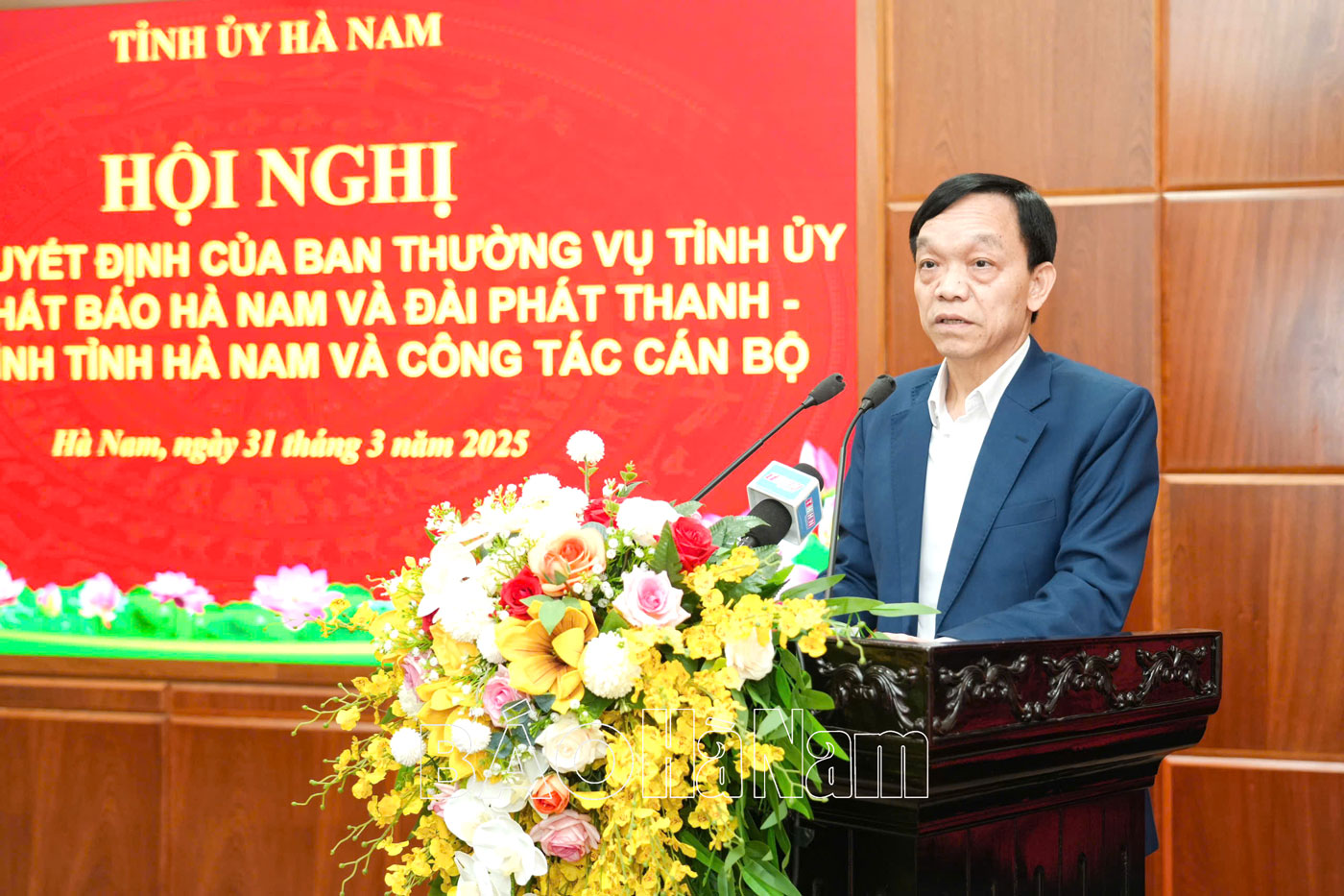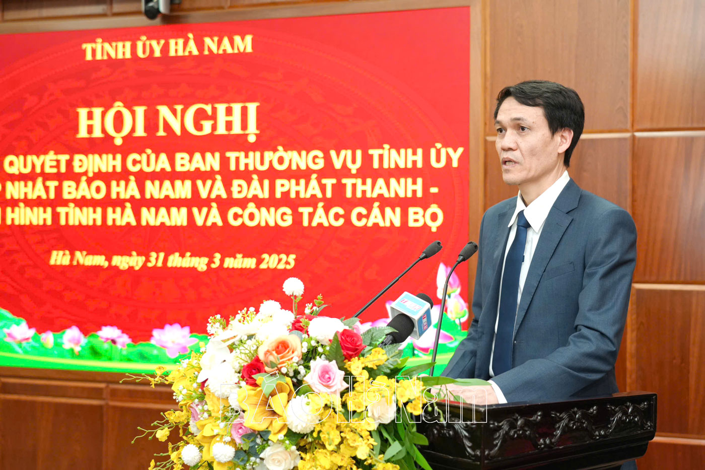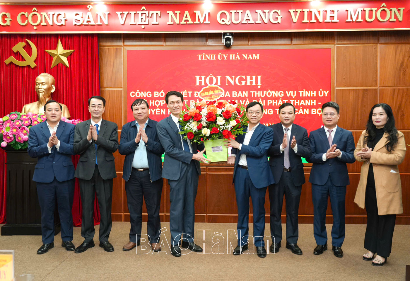 Chiều 31/3, Ban Thường vụ (BTV) Tỉnh ủy tổ chức hội nghị công bố quyết định về hợp nhất Báo Hà Nam và Đài Phát thanh và Truyền hình tỉnh và công tác cán bộ. Đồng chí Trương Quốc Huy, Bí thư Tỉnh ủy, Chủ tịch UBND tỉnh, Trưởng Đoàn đại biểu Quốc hội tỉnh dự, chỉ đạo hội nghị. Cùng dự có các đồng chí Ủy viên BTV Tỉnh ủy; đại diện Thường trực Đảng ủy các cơ quan Đảng tỉnh, Đảng ủy UBND tỉnh; lãnh đạo các ban xây dựng Đảng Tỉnh ủy, Sở Nội vụ; lãnh đạo Báo Hà Nam, Đài Phát thanh và Truyền hình tỉnh.