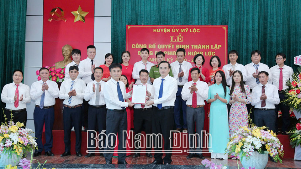 | Lãnh đạo huyện Mỹ Lộc trao Quyết định thành lập Đảng bộ phường Hưng Lộc. |