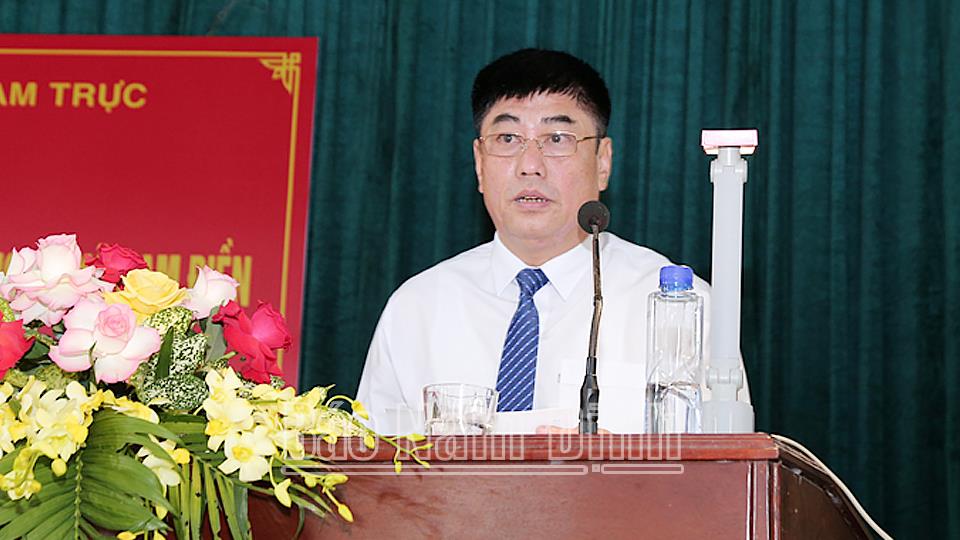 | Đồng chí Lưu Quang Tuyển, TUV, Bí thư Huyện ủy, Chủ tịch HĐND huyện Nam Trực phát biểu tại hội nghị. |