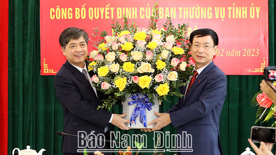 Tại lễ công bố Quyết định, đồng chí Chủ tịch UBND tỉnh Phạm Đình Nghị đã tặng hoa chúc mừng đồng chí Trần Văn Dương; trao Quyết định của Ban TVTU, tặng hoa chúc mừng đồng chí Hoàng Trọng Nghĩa.
