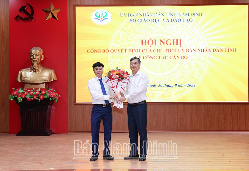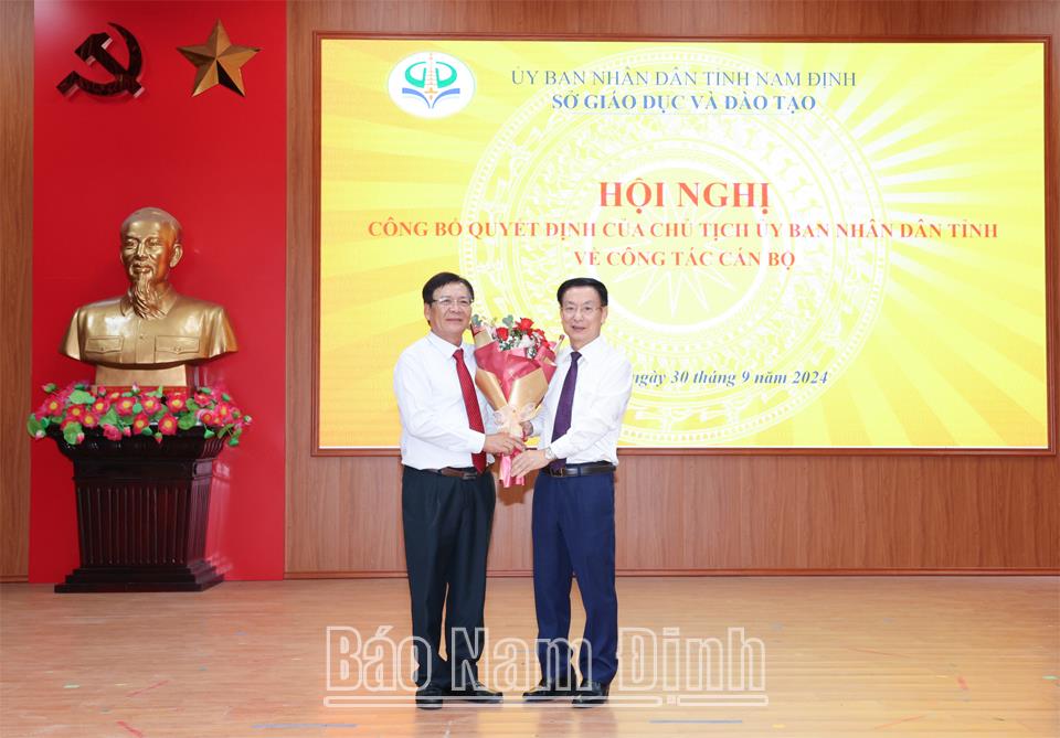 Tại hội nghị, lãnh đạo Sở Nội vụ đã công bố quyết định về nghỉ chế độ đối với đồng chí Cao Xuân Hùng, Tỉnh ủy viên, Giám đốc Sở GD và ĐT và Quyết định số 2026/QĐ-UBND, ngày 27/9/2024 của Chủ tịch UBND tỉnh về việc bổ nhiệm đồng chí Nguyễn Xuân Hồng, Phó Giám đốc Sở GD và ĐT, giữ chức vụ Giám đốc Sở GD và ĐT từ ngày 1/10/2024; thời hạn giữ chức vụ là 5 năm kể từ ngày bổ nhiệm.