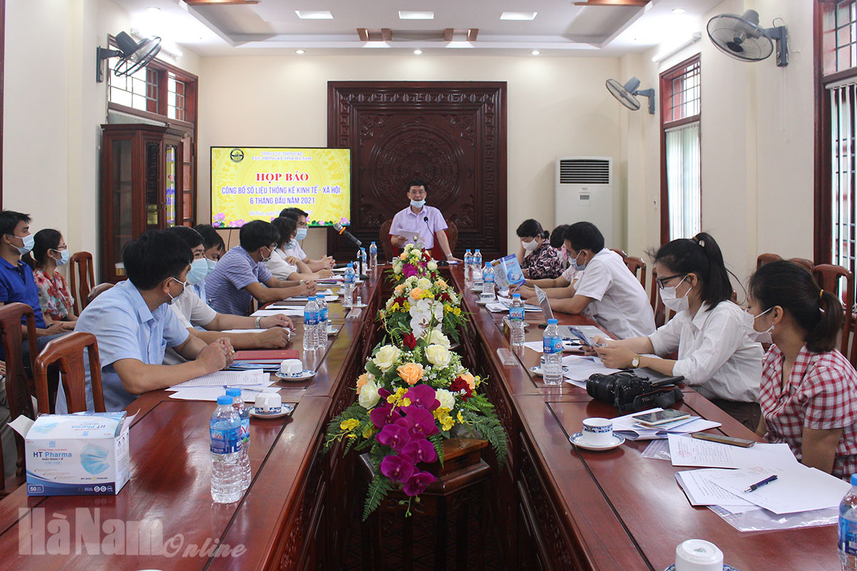 Các đại biểu dự họp báo công bố số liệu thống kê kinh tế - xã hội tỉnh Hà Nam 6 tháng đầu năm 2021.