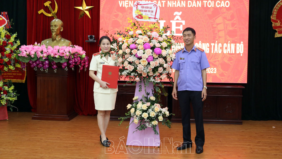 Tại hội nghị, lãnh đạo Vụ Tổ chức – Cán bộ (Viện KSND Tối cao) đã công bố Quyết định bổ nhiệm của Viện trưởng Viện KSND Tối cao đối với đồng chí Hoàng Thị Hiền, Kiểm sát viên cao cấp, từng giữ chức vụ Trưởng phòng 4, Vụ Thực hành quyền công tố và kiểm sát điều tra án an ninh (Viện KSND Tối cao) giữ chức Phó Viện trưởng Viện KSND tỉnh Hà Nam, thời hạn 5 năm kể từ ngày 10/4/2023.