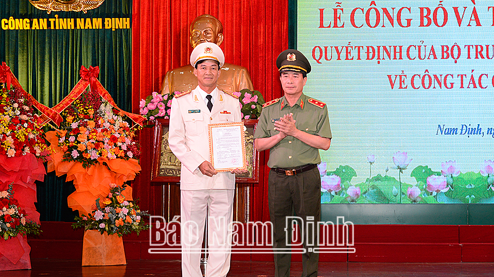 Tại buổi lễ, lãnh đạo Cục Tổ chức cán bộ (Bộ Công an) đã thông báo quyết định của Bộ trưởng Bộ Công an về việc điều động đồng chí Đại tá Phạm Văn Long, Giám đốc Công an tỉnh Nam Định giữ chức vụ Phó Cục trưởng Cục Cảnh sát điều tra tội phạm về ma túy (Bộ Công an); công bố quyết định của Bộ trưởng Bộ Công an điều động đồng chí Đại tá Trần Minh Tiến, Giám đốc Công an tỉnh Lâm Đồng giữ chức vụ Giám đốc Công an tỉnh Nam Định từ ngày 1-6-2022.