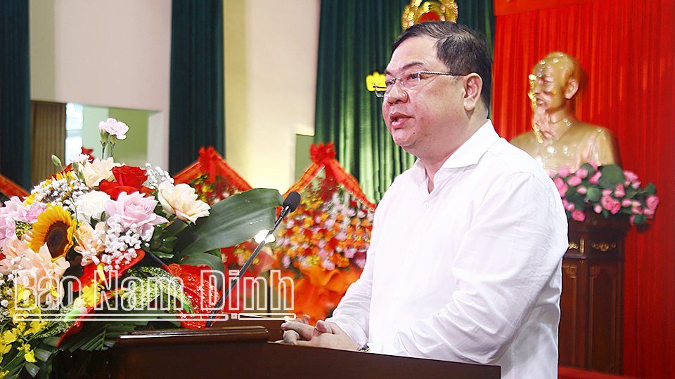 Thừa ủy quyền của Bộ trưởng Bộ Công an, đồng chí Trung tướng Lê Quốc Hùng, Thứ trưởng Bộ Công an đã trao quyết định của Bộ trưởng Bộ Công an cho Đại tá Trần Minh Tiến. Đại tá Trần Minh Tiến, sinh năm 1967, quê quán huyện Bình Lục, tỉnh Hà Nam. Trước khi được bổ nhiệm giữ chức vụ Giám đốc Công an tỉnh Nam Định, đồng chí từng công tác và giữ các chức vụ: Trưởng Công an huyện Bình Lục, Trưởng phòng Cảnh sát hình sự, Phó Giám đốc Công an tỉnh Hà Nam, sau đó là Giám đốc Công an tỉnh Lâm Đồng từ tháng 3-2021.