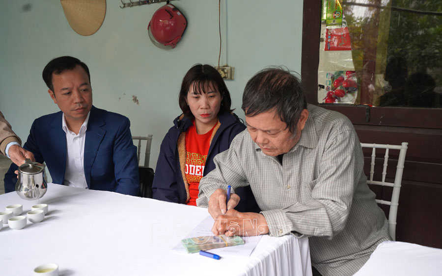 Bệnh binh Hoàng Xuân Thưởng, thôn Kênh, xã Thanh Nghị nhận tiền hỗ trợ sửa nhà.