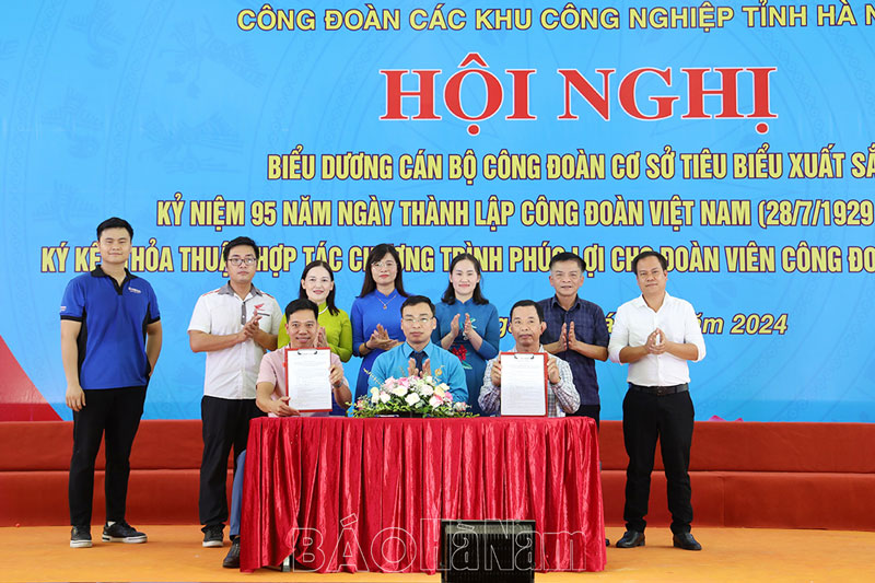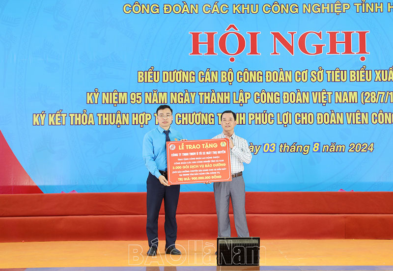 Tại hội nghị, Công đoàn các KCN tỉnh đã biểu dương 95 cán bộ CĐCS tiêu biểu có thành tích xuất sắc trong hoạt động công đoàn và phong trào công nhân lao động trong các KCN tỉnh. Đồng thời, ký kết thỏa thuận hợp tác với Công ty TNHH Thương mại dịch vụ ô tô xe máy Thọ Huyền và Công ty TNHH MTV Đầu tư và Thương mại Tân Hoàng Quang.