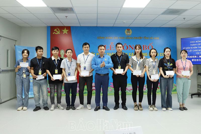 Tại hội nghị, lãnh đạo Công đoàn các KCN tỉnh đã công bố và trao quyết định thành lập 10 CĐCS, kết nạp 724 đoàn viên, gồm các đơn vị: Công ty TNHH AUO Việt Nam, Công ty TNHH POSITEK Việt Nam, Công ty TNHH HARIM VINA, Công ty TNHH U.D.ELECTRONIC Việt Nam, Công ty TNHH Điện tử FREEPORT Việt Nam, Công ty TNHH Công nghệ Phẩm Thuyên Việt Nam, Công ty TNHH Natoco Việt Nam, Công ty TNHH điện tử Line Tek Việt Nam, Công ty TNHH Phi Nhung, Công ty TNHH Thương mại.