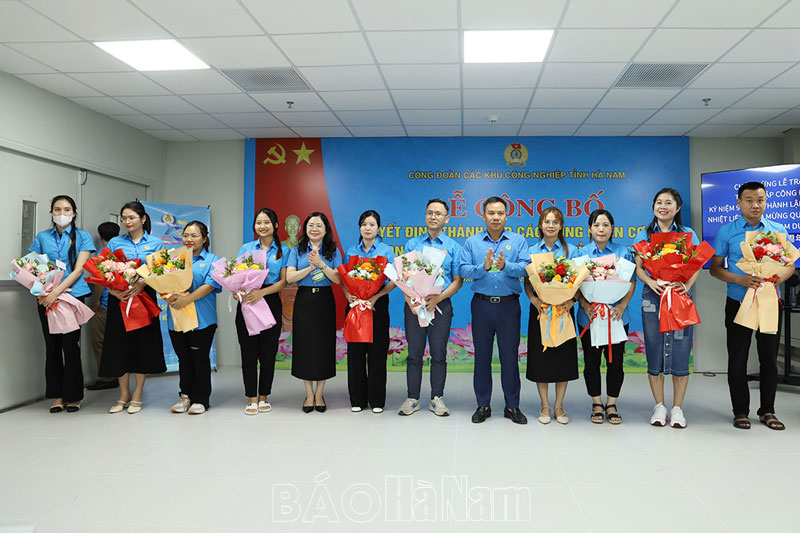Chiều 1/8, tại Công ty TNHH AUO Việt Nam, Khu Công nghiệp (KCN) Đồng Văn III, thị xã Duy Tiên, Công đoàn các KCN tỉnh tổ chức Lễ Công bố các Quyết định thành lập 10 công đoàn cơ sở (CĐCS). Dự hội nghị có lãnh đạo Liên đoàn Lao động (LĐLĐ) tỉnh, Ban Quản lý các KCN tỉnh; đại diện lãnh đạo các doanh nghiệp, ban chấp hành CĐCS lâm thời của 10 đơn vị.
