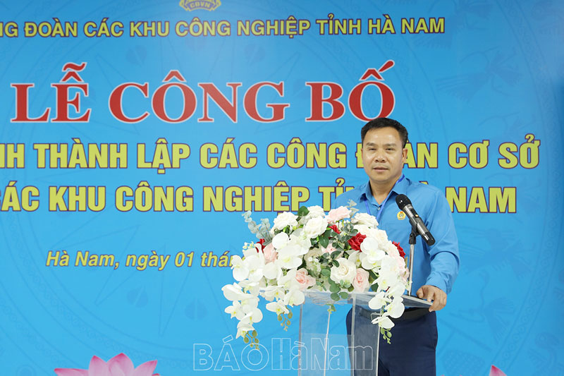 Phát biểu tại buổi lễ, Chủ tịch LĐLĐ tỉnh Lê Văn Hà đánh giá cao sự cố gắng của Ban Thường vụ Công đoàn các KCN tỉnh thời gian qua đã triển khai nhiều giải pháp hiệu quả để vận động thành lập tổ chức CĐCS, phát triển đoàn viên. Thông qua đó, chăm lo, bảo vệ tốt hơn quyền, lợi ích hợp pháp, chính đáng cho đoàn viên, người lao động, đồng thời xây dựng tổ chức công đoàn ngày càng vững mạnh.