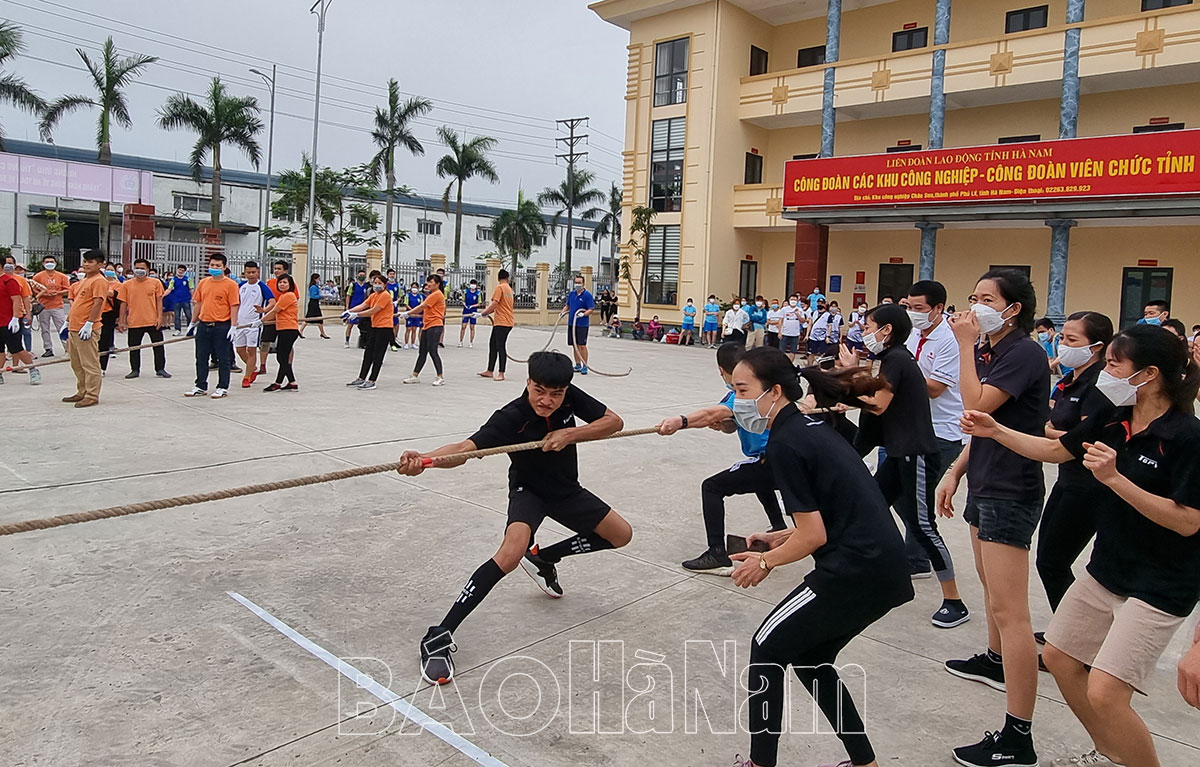 Đông đảo CNLĐ tham gia trò chơi kéo co tại ngày hội thể thao trong các KCN.