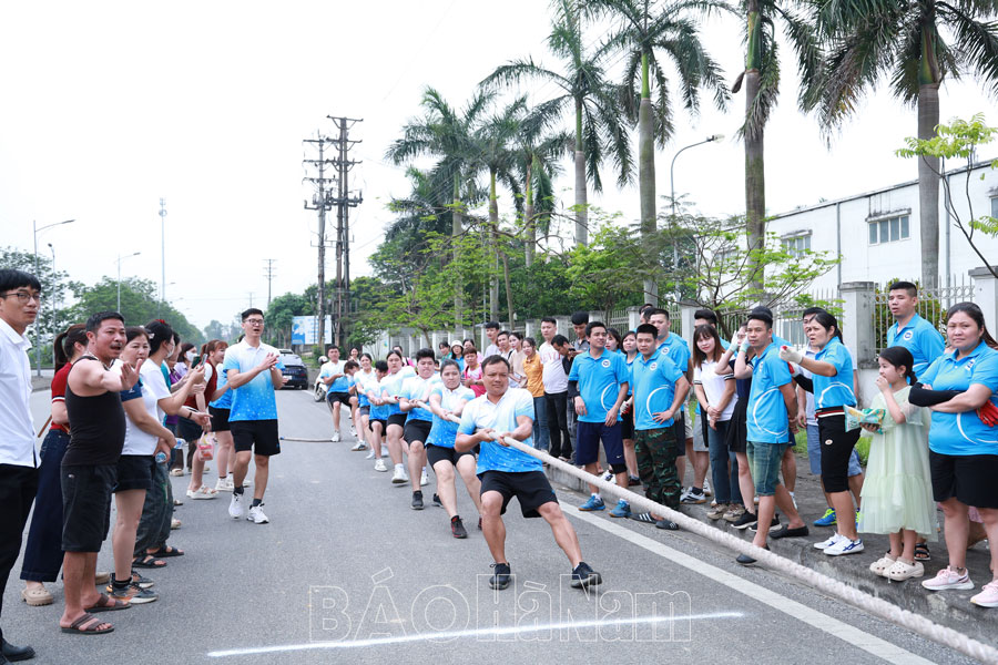 Đoàn viên, công nhân lao động hào hứng tham gia thi đấu, cổ vũ nội dung thi kéo co.
