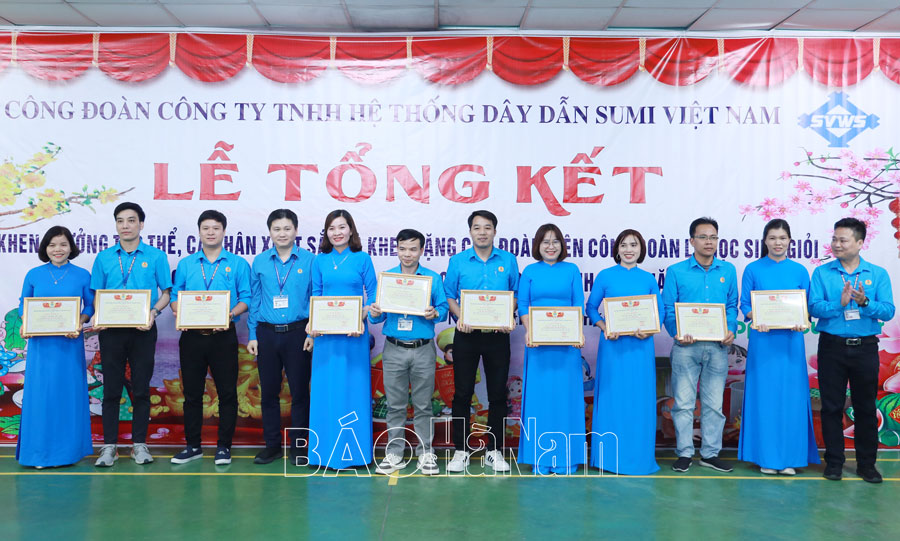 Công ty TNHH Hệ thống dây dẫn Sumi Việt Nam có 10.000 NLĐ, 100% tham gia tổ chức công đoàn. Năm 2024, Công đoàn công ty đã tổ chức tốt các hoạt động chăm lo đời sống vật chất, tinh thần cho NLĐ; tích cực tham gia các hoạt động do Công đoàn các KCN tỉnh tổ chức. Phong trào thể thao, đặc biệt là bóng đá tại công ty phát triển mạnh mẽ, tạo sân chơi bổ ích và tăng cường sự gắn kết trong toàn hệ thống...
