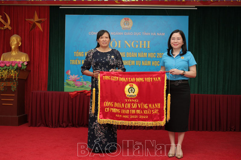 Lãnh đạo LĐLĐ tỉnh trao Cờ thi đua xuất sắc của Tổng LĐLĐ Việt Nam cho Công đoàn cơ sở Trường THPT A Bình Lục.