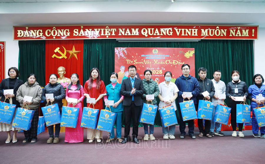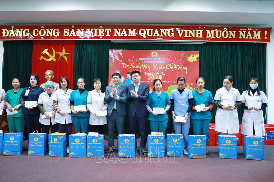 Tại chương trình “Tết sum vầy – Xuân ơn Đảng” 2025, Liên đoàn Lao động tỉnh, Công đoàn ngành y tế tặng 84 suất quà cho đoàn viên, người lao động với tổng kinh phí trên 67 triệu đồng nhằm chia sẻ, động viên người lao động trước thềm Tết Nguyên đán Ất Tỵ 2025.